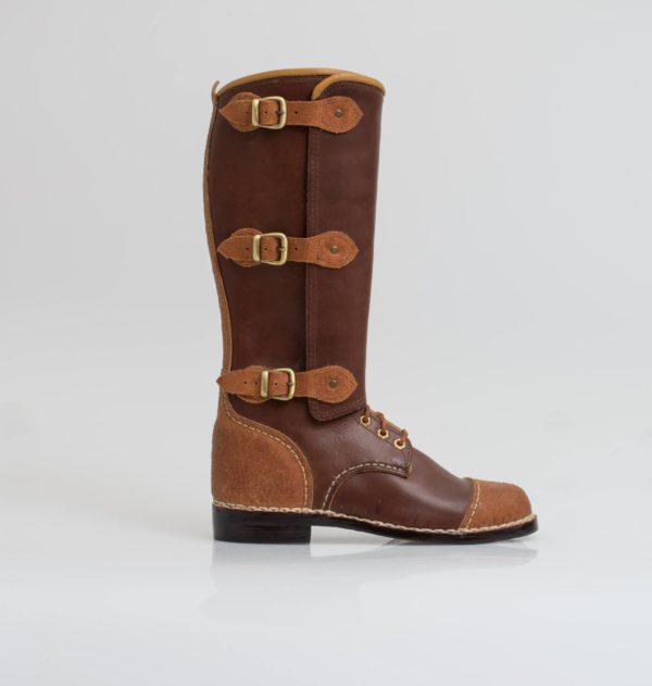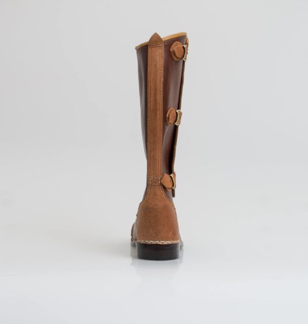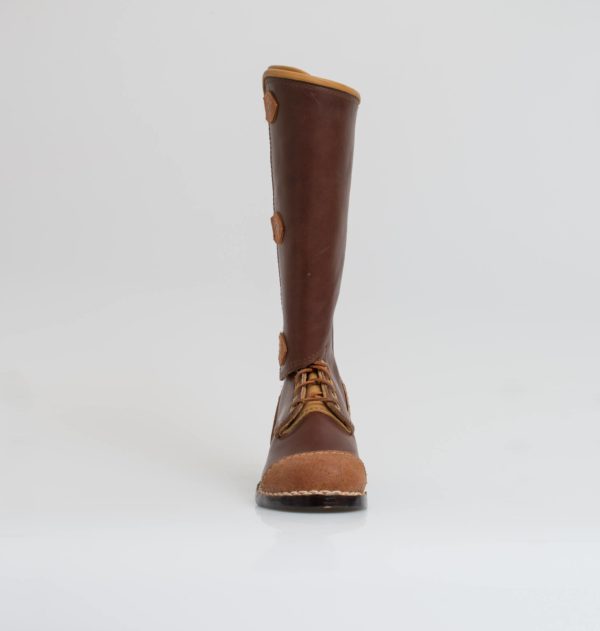 Feasible with leather sole or with thick-ridged sole in Vibram rubber, in honey and black color.