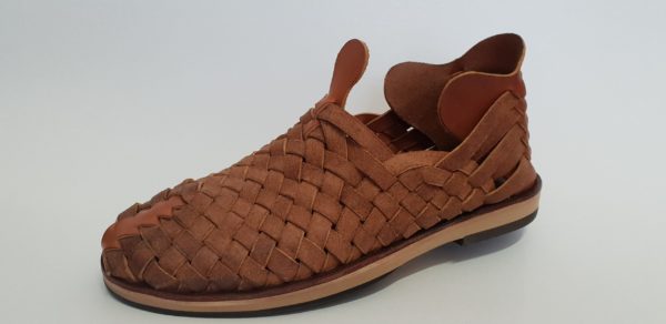 Leather sandal with no-slip rubber. Hand woven. One cm. micro porous midsole. Unisex