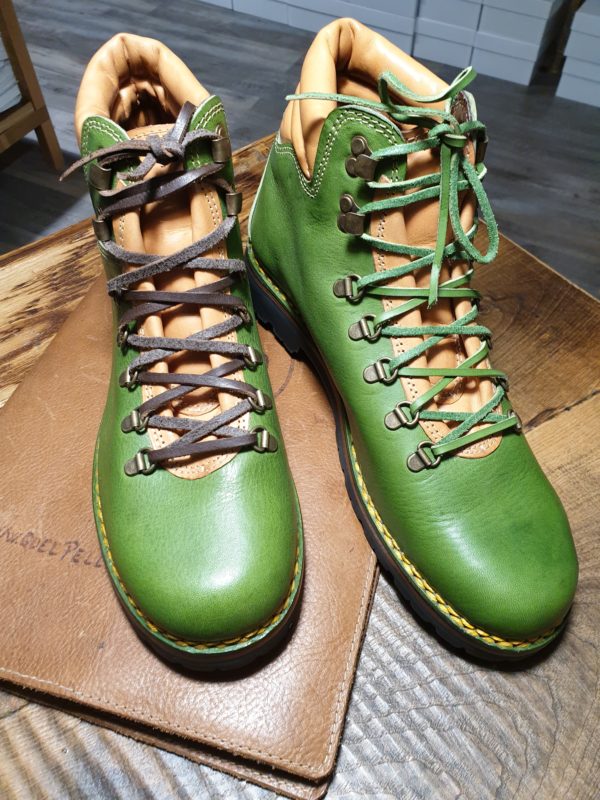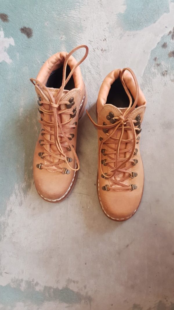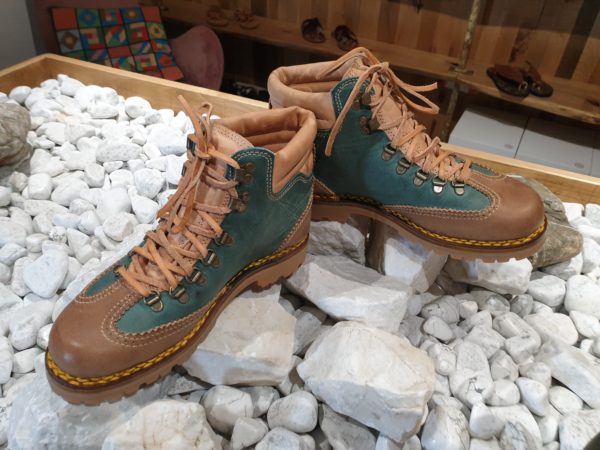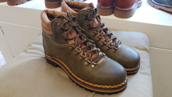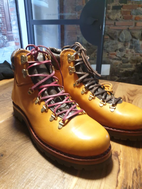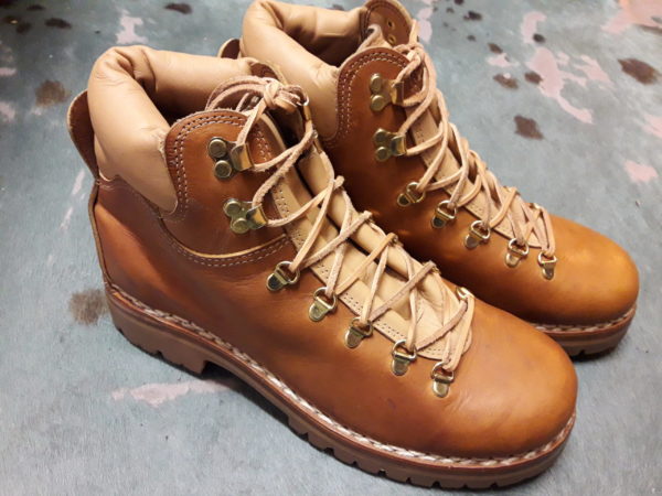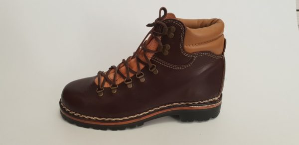 Feasible with thick-ridged sole in Vibram rubber in honey or black colors.
