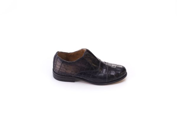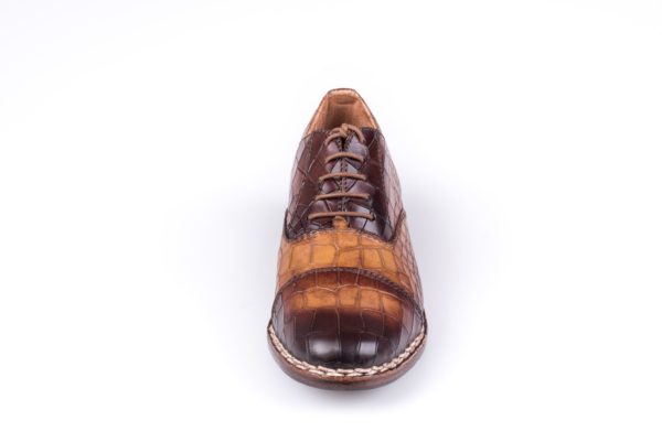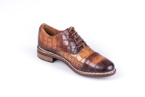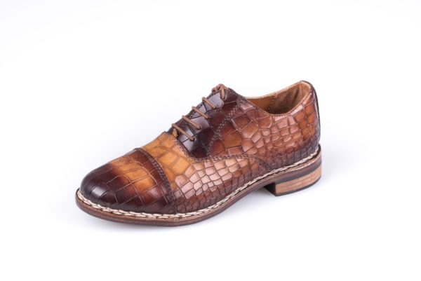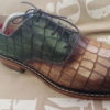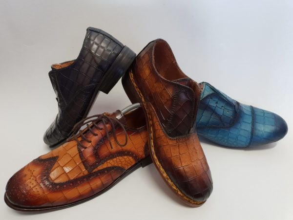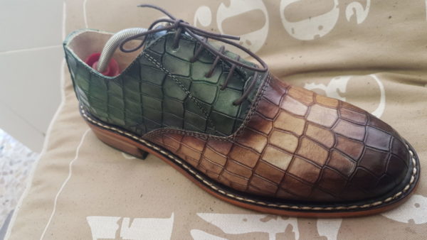 Tomaio in vitello stampato con disegno in pelle di coccodrillo. Dipinta e sfumata a mano.
