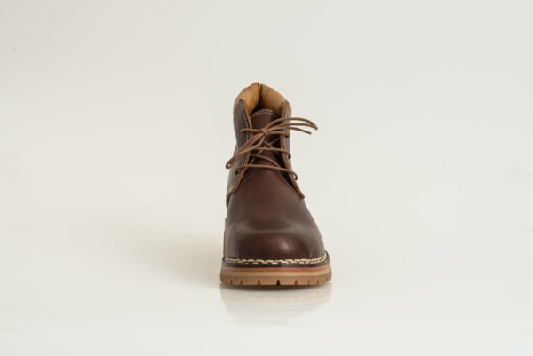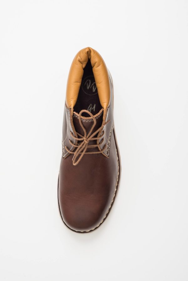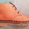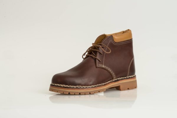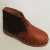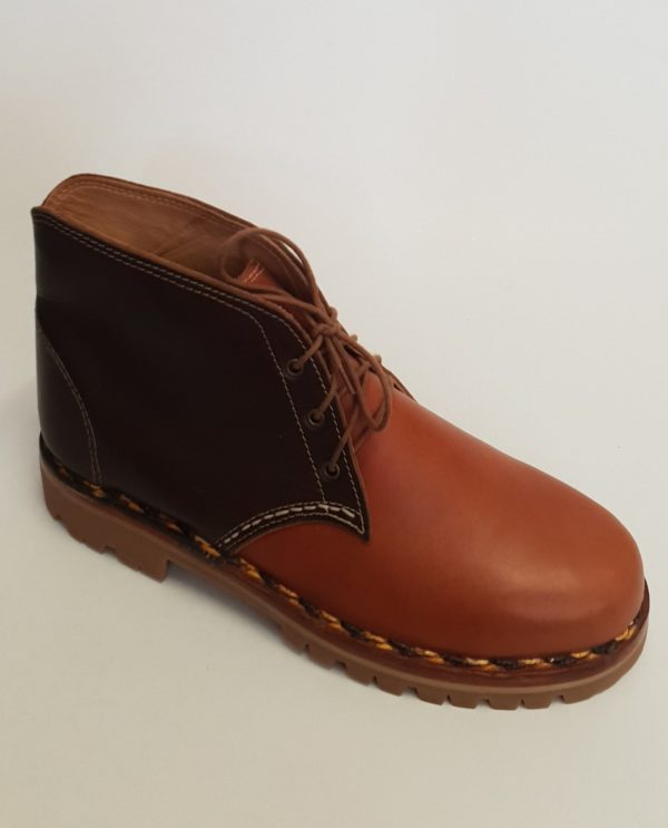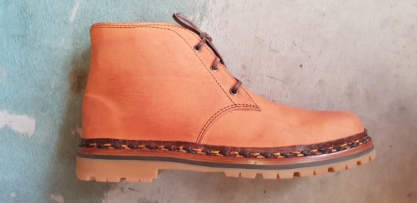 Tomaio in vacchetta foderato in vitello. Questo modello differisce dalla “Clark” semplice, solo dal “salsicciotto” in gomma piuma foderato in vitello, situato sul tendine d’ achille. Realizzabile con suola in cuoio e con suola in carroarmato vibram in gomma, nei colori miele (in foto) e nero.