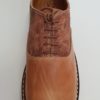 L’altra scarpa nelle foto, invece, ha tutte le tecniche di realizzazione della precedente, ma si differenzia nel pellame, che in questo caso e’ tutto vitello. La particolarita’ di questa scarpa, e’ che ho graffiato la pelle con un raschietto (la parte posteriore) e poi ho dato una mano di marrone chiaro.