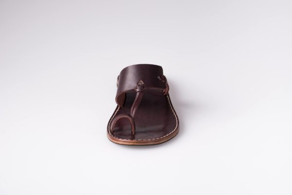 Infradito unisex. Tomaio in vacchetta di spessore 2 mm. Soletta in vitello da 4 mm. Intersuola in cuoio da 2 mm. Suola e tacco in gomma antiscivolo.