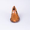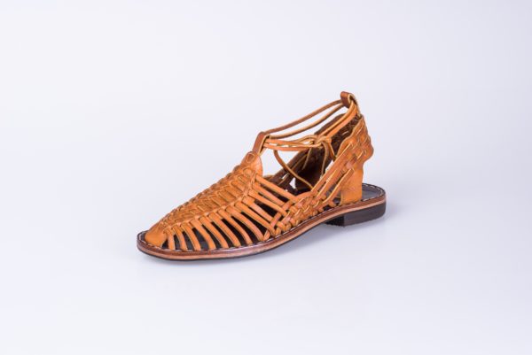 Sandalo per donna. Tomaio in vacchetta spessore 2 mm. Soletta in vitello da 4 mm. Intersuola in cuoio da 2 mm. Suola e tacco in gomma antiscivolo.